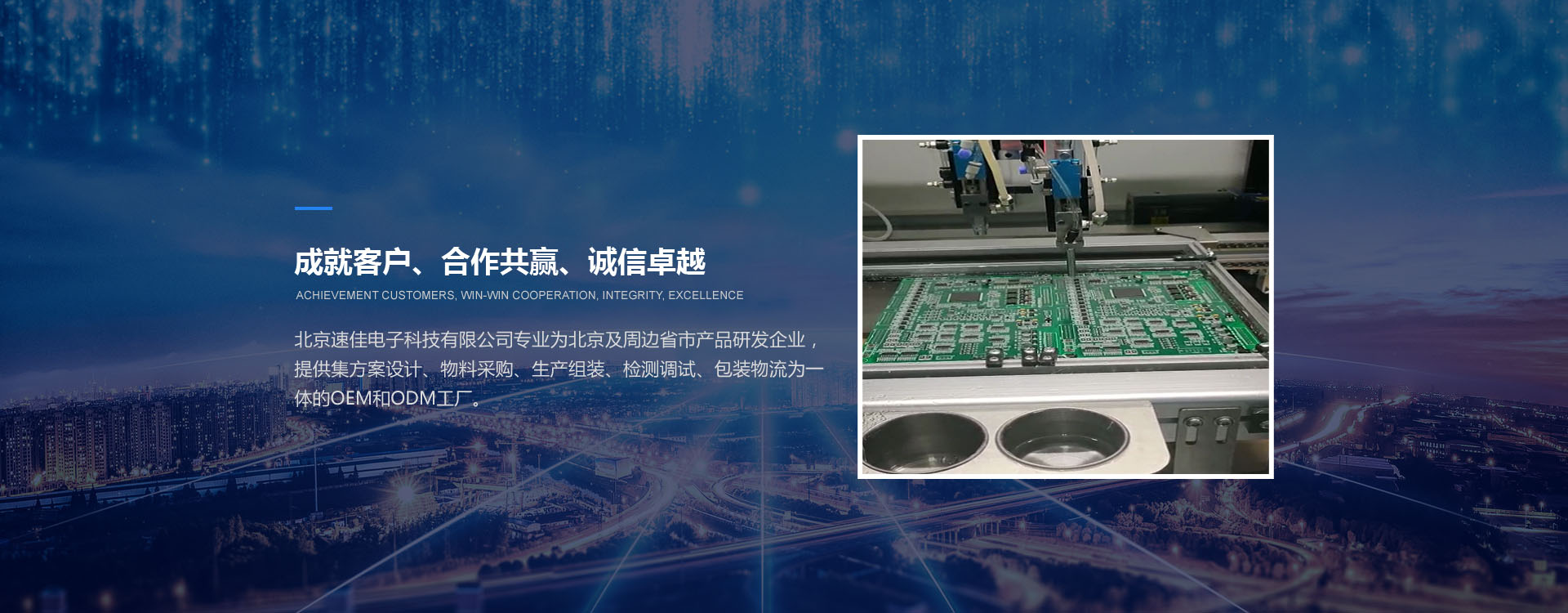 北京速佳電子科技有限公司專業(yè)為北京及周邊省市產(chǎn)品研發(fā)企業(yè),提供集方案設(shè)計(jì)、物料采購(gòu)、生產(chǎn)組裝、檢測(cè)調(diào)試、包裝物流為一體的OEM和ODM工廠。